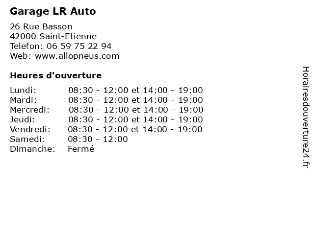 | Lundi | 08:30-12:00 et 14:00-19:00 |