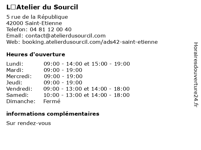 | Samedi | 10:00-13:00 et 14:00-18:00 |