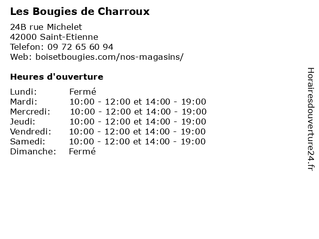 | Mercredi | 10:00-12:00 et 14:00-19:00 |