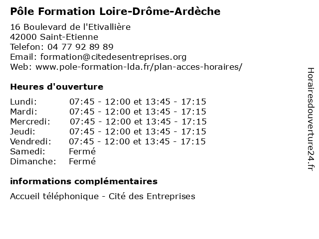| Lundi | 07:45-12:00 et 13:45-17:15 |