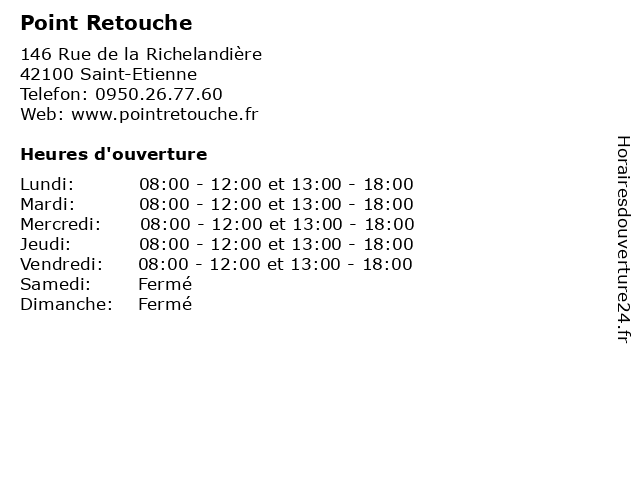 | Lundi | 08:00-12:00 et 13:00-18:00 |
