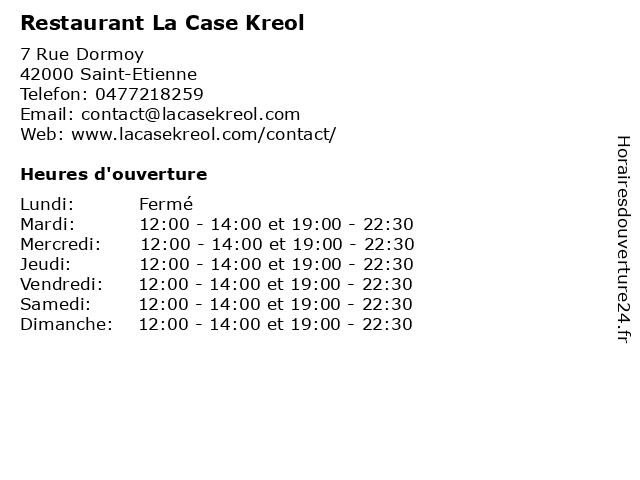 | Dimanche | 12:00-14:00 et 19:00-22:30 |