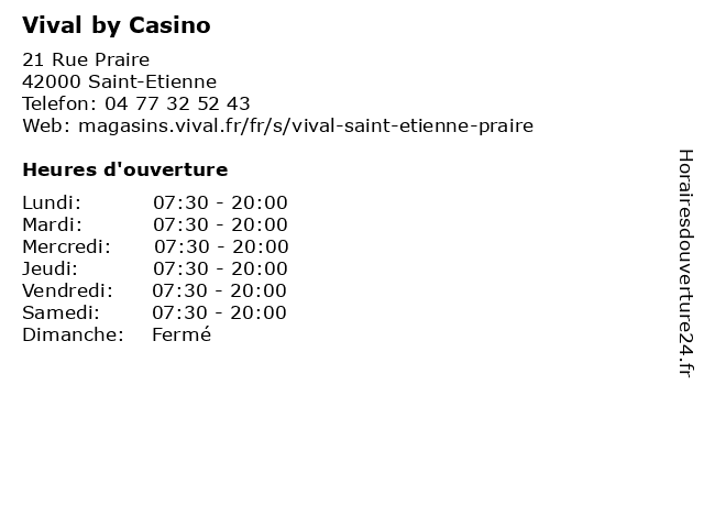 1 Vival by Casino (Distance: 0,96 km) - Cours Victor Hugo, 42000 Saint Etienne by, casino, droguerie, d’hypermarchés, frais, fruits et légumes, hygiène, parfumerie et autres produits non alimentaires., surgelés, vival, épicerie 2 Vival By Casino (Distance: 1,09 km) 41 Rue des Alliés, 42100 Saint-Etienne alimentation, by, casino, distributeur alimentaire, supermarché, supérette, vival, épicerie 3 Vival By Casino (Distance: 1,12 km) 4 Place du Maréchal Foch, 42000 Saint-Étienne alimentation, by, casino, distributeur alimentaire, supermarché, supérette, vival, épicerie 4 Vival By Casino (Distance: 1,46 km) 2 Rue de la Roche du Geai, 42000 Saint-Étienne alimentation, by, casino, distributeur alimentaire, supermarché, supérette, vival, épicerie 5 Vival by Casino (Distance: 1,53 km) 21 Rue du 11 Novembre, 42000 Saint-Etienne by, casino, droguerie, d’hypermarchés, frais, fruits et légumes, hygiène, parfumerie et autres produits non alimentaires., surgelés, vival, épicerie 6 Vival By Casino (Distance: 10,56 km) 33 Place de la Liberté, 42400 Saint-Chamond alimentation, by, casino, distributeur alimentaire, supermarché, supérette, vival, épicerie |