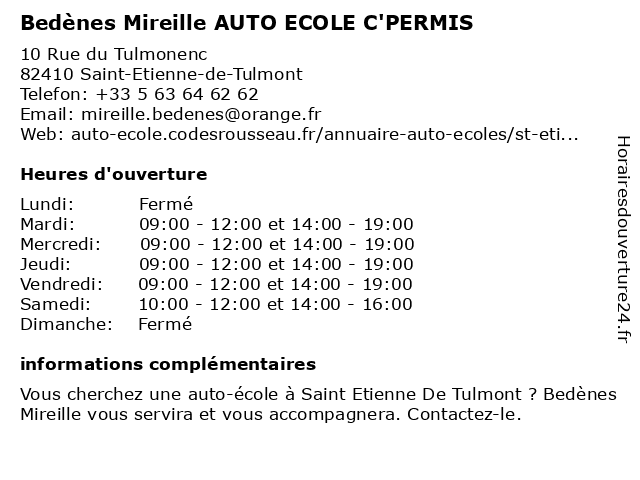 | Mardi | 09:00-12:00 et 14:00-19:00 |
