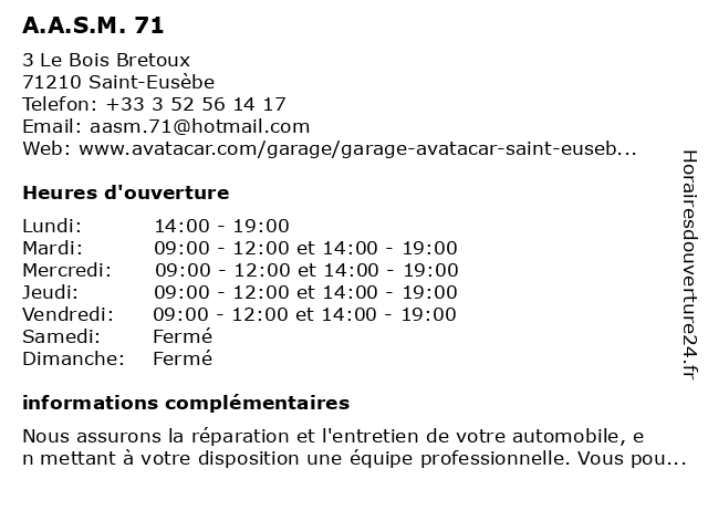 | Mardi | 09:00-12:00 et 14:00-19:00 |
