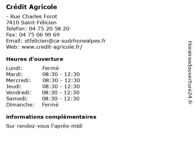 1 Crédit Agricole (Distance: 7,05 km) - Grande Rue, 07290 Satillieu agence, agricole, assurance, bancaire, banque, crédit 2 Crédit Agricole (Distance: 11,60 km) - Avenue Victor Descours, 07270 Lamastre agence, agricole, assurance, bancaire, banque, crédit 3 Crédit Agricole (Distance: 17,36 km) 11 Place Des Cordeliers, 07100 Annonay agence, agricole, assurance, bancaire, banque, crédit 4 Crédit Agricole (Distance: 17,47 km) 9 Avenue du Vivarais, 07370 Sarras agence, agricole, assurance, bancaire, banque, crédit 5 Crédit Agricole (Distance: 17,86 km) - Res Les Peupliers, 07430 Davezieux agence, agricole, assurance, bancaire, banque, crédit 6 Crédit Agricole (Distance: 17,97 km) - Place Aristide Briand, 26240 Saint-Vallier agence, agricole, assurance, bancaire, banque, crédit |