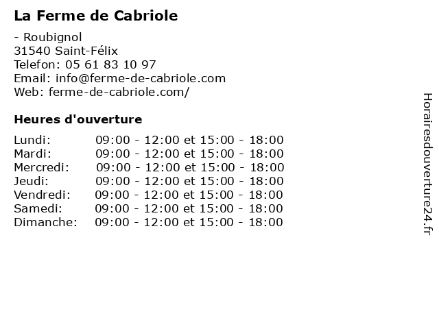 | Dimanche | 09:00-12:00 et 15:00-18:00 |