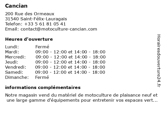 | Samedi | 09:00-12:00 et 14:00-18:00 |