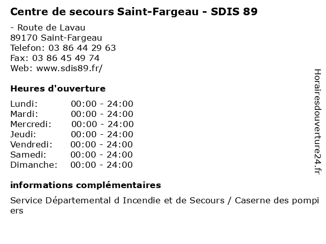 | Samedi | 00:00-24:00 |