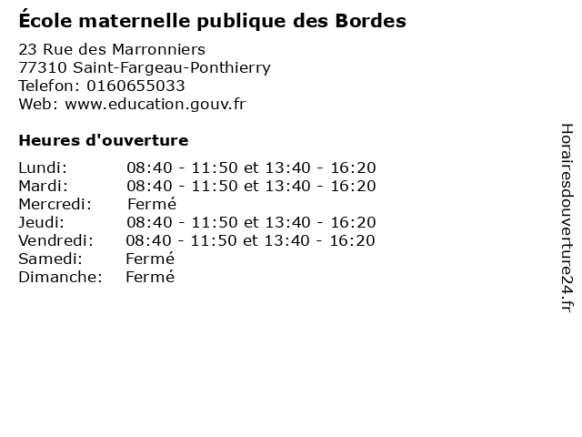 | Mardi | 08:40-11:50 et 13:40-16:20 |