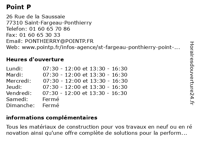 1 Point P (Distance: 6,53 km) 58 Route de Melun, 77930 Perthes aménagement, construction, matériaux, point, point.p, quinçaillerie, équipement 2 Point P (Distance: 7,15 km) 3-5 Rue Victor Grignard, 91540 Mennecy aménagement, construction, equipement, matériaux, point 3 Point P (Distance: 8,28 km) 52 Quai Hippolyte Rossignol, 77000 Melun aménagement, construction, matériaux, point, point.p, quinçaillerie, équipement 4 Point P (Distance: 10,46 km) 53 Quai de l'Apport Paris, 91100 Corbeil-Essonnes aménagement, construction, equipement, matériaux, point, point.p 5 Point P (Distance: 16,99 km) 18 Route Nationale 6, 91800 Brunoy aménagement, construction, equipement, matériaux, point 6 Point P (Distance: 17,01 km) 6-8 Avenue du Bout du Plessis, 91700 Sainte-Geneviève-des-Bois aménagement, construction, equipement, matériaux, point, point.p |