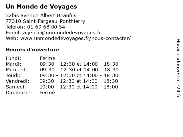 | Mardi | 09:30-12:30 et 14:00-18:30 |