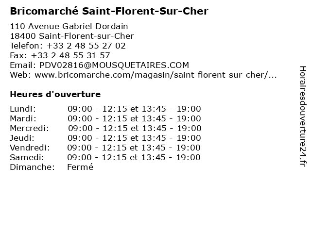 1 Bricomarché (Distance: 0,56 km) 110 Avenue Gabriel-Dordain, 18400 Saint-Florent-sur-Cher bonnes affaires, bricolage, bricomarché, decoration, jardin, materiaux 2 Bricomarché Mehun-Sur-Yèvre (Distance: 16,42 km) Route de Bourges, 18500 Mehun-sur-Yèvre bricomarché, mehun, sur, yèvre 4 Bricomarché Vierzon (Distance: 26,92 km) Avenue Maréchal de Lattre de Tassigny, 18100 Vierzon bricomarché, vierzon 6 |