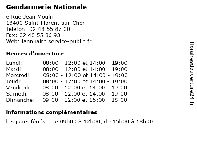 | Lundi | 08:00-12:00 et 14:00-19:00 |