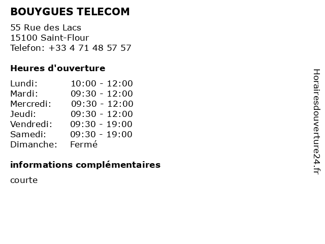 1 Coriolis Telecom (Distance: 0,00 km) 55 Rue Les Lacs, 15100 Saint-Flour coriolis, internet, smartphones, tablettes tactiles, telecom, télécom, téléphone, téléphones mobiles 2 Coriolis Telecom (Distance: 0,37 km) 9 Place d'Armes, 15100 Saint Flour coriolis, internet, réparation, smartphones, tablettes tactiles, telecom, télécom, téléphone, téléphones mobiles 3 Welcom | Téléphone, reconditionné, réparation, forfait, box internet (Distance: 0,00 km) 55 Rue des Lacs, 15100 Saint-Flour accessoires, bouygues telecom, box, box internet, box internet fibre, coriolis télécom, diagnostic téléphone, forfait, forfait mobile, internet, objets connectés, occasion, reconditionné, reconditionnés, reprise de téléphone, reprise iphone, revendez votre téléphone actuel, réparation, réparation téléphone, téléphone, téléphones neufs, téléphonie mobile, vendre son ancien téléphone, welcom, éligibilité à la fibre 4 BOUYGUES TELECOM (Distance: 37,88 km) 77 Avenue d'Auvergne, 43100 Brioude bouygues, fai, fournisseur d'accès internet, telecom, téléphonie mobile 5 BOUYGUES TELECOM (Distance: 52,01 km) 87 Avenue Charles de Gaulle, 15000 Aurillac bouygues, clef, telecom 6 Welcom | Téléphone, reconditionné, réparation, forfait, box internet (Distance: 54,14 km) 87 Avenue Charles de Gaulle, 15000 Aurillac accessoires, bouygues telecom, box, box internet, box internet fibre, coriolis télécom, diagnostic téléphone, forfait, forfait mobile, internet, objets connectés, occasion, reconditionné, reconditionnés, reprise de téléphone, reprise iphone, revendez votre téléphone actuel, réparation, réparation téléphone, téléphone, téléphones neufs, téléphonie mobile, vendre son ancien téléphone, welcom, éligibilité à la fibre |