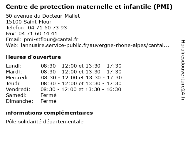 Lundi | 08:30-12:00 et 13:30-17:30 |