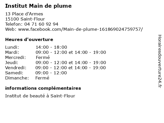 Horaires d'ouverture |