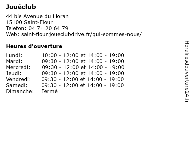 | Samedi | 09:30-12:00 et 14:00-19:00 |