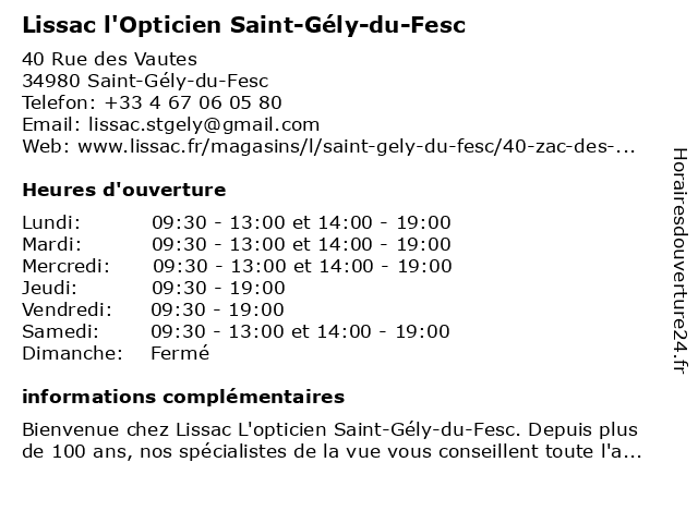 | Samedi | 09:30-13:00 et 14:00-19:00 |