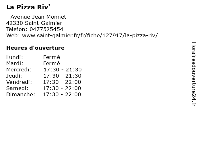 1 La Pizza Riv' (Distance: 12,83 km) 4 Pierre Mendès France, 42270 Saint-Priest-en-Jarez la, pizza, pizzeria, restauration rapide, riv' 2 La Pizza Riv' (Distance: 18,61 km) 26 Rue du 11 Novembre, 42100 Saint-Étienne boisson, la, pizza, repas, restaurants, riv' 3 Pizza Cosy (Distance: 4,69 km) - Avenue du 8 Mai 1945, 42340 Veauche cosy, emporter, livraison, pizza, pizzeria, restaurant 4 Restaurant Pizza Pasta Del Arte (Distance: 12,76 km) Centre Commercial Les Portes d, 42390 Villars arte, del, pasta, pizza, restaurant, restaurants, sorebis 5 La Pizza Riv (Distance: 13,96 km) Raimond 11 Avenue Albert, 42270 St Priest En Jarez 11, 13, pizza, restaurants, riv, rocca 6 |