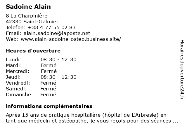 | Samedi | Fermé |