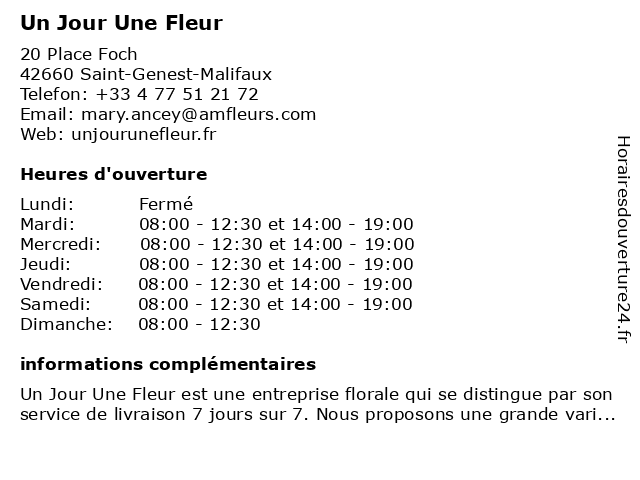 | Lundi | Fermé |