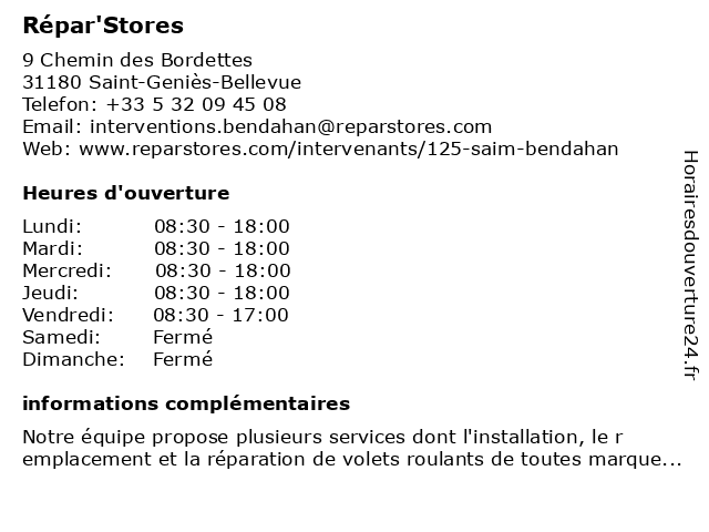 4 Espace Stores (Distance: 4,92 km) 14 Rue Apollo, 31240 L’Union entreprise, espace, fenêtres, fermetures, pergolas, portes, société, stores, volets 5 Repar'Stores Toulouse Ramonville Muret - Réparation volet roulant et store banne (Distance: 5,33 km) 12 Chemin de Rabaudis, 31140 Montberon banne, et, muret, ramonville, repar'stores, roulant, réparation, store, toulouse, volet 6 Midi Stores Toulouse (Distance: 5,55 km) 108 Route de Paris, 31150 Fenouillet fabricant de stores, installations, menuiserie, midi, pergolas, portail, stores, toulouse |