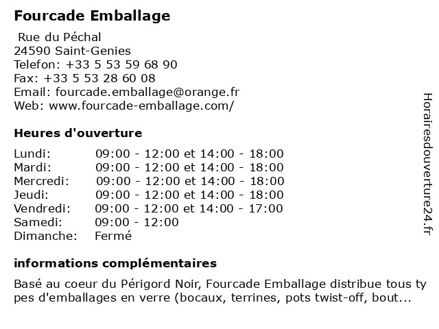 1 France Rurale - Jardinerie Fourcade (Distance: 14,35 km) . route de Souillac, 24200 Sarlat La Canéda animalerie, fourcade, france, jardinage, jardinerie, magasin, mobilier, rurale 2 Spem Emballages (Distance: 16,02 km) - ZI du Coutal, 24120 Terrasson-Lavilledieu boites, cartons, conserve, emballage, emballages, fabrication, sacs, spem, verrerie 3 BV Green - Agro Distribution (Distance: 19,98 km) - Les Granges, 24220 Castels et Bezenac agro, agroalimentaire, bv, conditionnement, distribution, emballage, fabrication, green, métal, verre 4 FOURCADE Laurent (Distance: 30,01 km) 1 Boulevard Docteur Verlhac, 19100 Brive-la-Gaillarde fourcade, laurent 5 FOURCADE CATHERINE STE AU FIL DU TEMPS (Distance: 30,91 km) 55 Boulevard des Martyrs, 46300 Gourdon au, catherine, du, fil, fourcade, ste, temps 6 Temaco (Distance: 36,95 km) - ZA Escudier, 19270 Donzenac contenants, emballage, fabrication, métal, plastique, temaco, verre  |