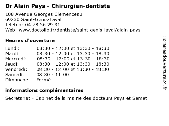 | Lundi | 08:30-12:00 et 13:30-18:30 |