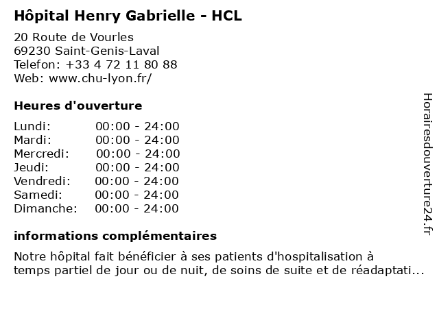 1 Hôpital Henry Gabrielle (Distance: 0,15 km) 20 Route de Vourles, 69230 Saint Genis Laval clinique, gabrielle, henry, hôpital, hôpitaux, santé, services 2 Hôpital Lyon Sud (HCL) (Distance: 1,69 km) 165 Chemin du Grand Revoyet, 69310 Pierre-Bénite hcl, hôpital, lyon, sud 3 HCL Groupement Hospitalier du Sud - Centre hospitalier Lyon-Sud (Pierre-Bénite) (Distance: 1,75 km) 165 Chemin du Grand Revoyet, 69495 Pierre-Bénite bénite, centre, docteur, du, groupement, hcl, hospitalier, lyon, medecins, pierre, sante, sud 4 HCL Groupement Hospitalier de la Gériatrie - Hôpital gériatrique Pierre Garraud (LYON) (Distance: 6,27 km) 136 Rue Commandant-Charcot, 69322 Lyon de, docteur, garraud, groupement, gériatrie, gériatrique, hcl, hospitalier, hôpital, la, lyon, medecins, pierre, sante 5 Hôpital Pierre Garraud - HCL (Distance: 6,29 km) 136 Rue Commandant Charcot, 69005 Lyon garraud, hcl, hôpital, pierre 6 HCL Hospices Civils de Lyon (Lyon) (Distance: 8,43 km) 3 Quai des Celestins, 69229 Lyon civils, de, docteur, hcl, hospices, lyon, medecins, sante |