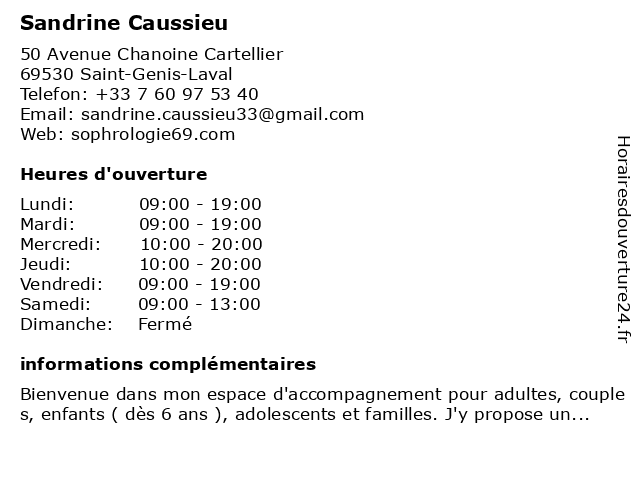 1 Sandrine Caussieu - Sophrologue (Distance: 3,77 km) 115 Chemin de Pressin, 69230 Saint-Genis-Laval caussieu, sandrine, sante, soins, sophrologie, sophrologue 2 Sandrine Garnier-Scotton - Pédicure-podologue (Distance: 4,67 km) 29 Rue du Perron, 69600 Oullins garnier, médecin, médecine, médical, pharmaceutique, podologue, pédicure, sandrine, scotton, secretariat, traitement 4 Sandrine Caussieu - Sophrologue (Distance: 5,96 km) 69630 Route de Chaponost, 69510 Soucieu-en-Jarrest caussieu, medecin, sandrine, sante, sophro, sophrologue 5 Green Acres - Sandrine Olivier Immobilier (Distance: 7,20 km) 50 r André Sabatier, 69520 Grigny acres, agency, apartment, green, immobilier, olivier, real estate, sandrine 6 Roux Sandrine - Psychologue (Distance: 9,28 km) 14 Place Jean Macé, 69007 Lyon psychanalyste, psychologue, psychothérapeute, roux, sandrine, thérapie |