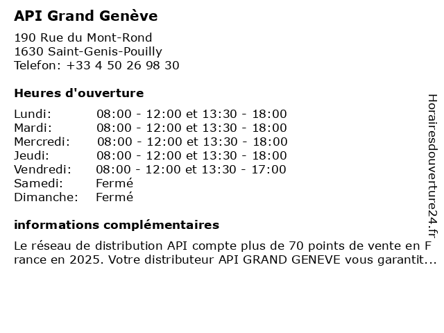 | Lundi | 08:00-12:00 et 13:30-18:00 |