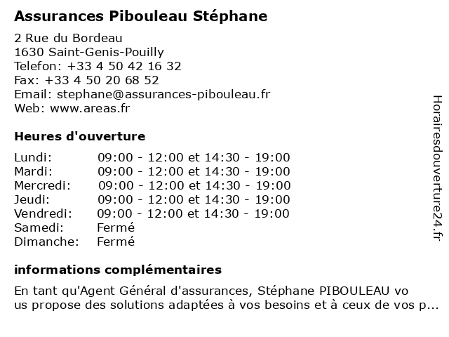 1 Assurances Stéphane Pibouleau (Distance: 0,00 km) 2 Rue du Bordeau, 01630 Saint-Genis-Pouilly agence, assurances, auto, courtier, habitantion, immobilier, pibouleau, prévoyance, santé, stephane, stéphane 2 MMA - Entrepreneurs d'Assurances (Distance: 7,07 km) 20 Rue de Meyrin, 01210 Ferney Voltaire assurance, d'assurances, entrepreneurs, mma, prévoyance, santé 3 Abeille Assurances (Distance: 11,39 km) 86 Rue Des Entrepreneurs, 01170 Gex abeille, assurance auto, assurance vie, assurances, aviva, habitation, santé 4 Abeille Assurances (Distance: 11,94 km) 2 Rue Général Pacthod, 74160 Saint-Julien-en-Genevois abeille, assurance, assurance abeille, assurance auto, assurance-vie, assurances, habitation, santé 5 CAPRI Assurances (Distance: 15,72 km) 125 Rue de Genève, 74240 Gaillard assurance, assurances, capri, courtage, dommages, edelweiss, particulier, professionnels, prévoyance, risques, santé 6 Abeille Assurances (Distance: 17,25 km) 17 Avenue de la Gare, 74100 Annemasse abeille, assurance, assurance abeille, assurance auto, assurance-vie, assurances, habitation, santé |
