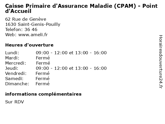 Termes de recherche pour Caisse Primaire d'Assurance Maladie (CPAM) - Point d'Accueil:point, centre, caisse, santé, assurance, maladie, soins, d'assurance, arrêts, d'accueil, cpam, primaire, ameli, remboursements |