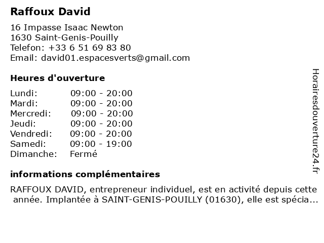 Horaires d'ouverture |