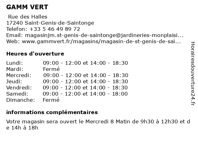 | Mercredi | 09:00-12:00 et 14:00-18:30 |