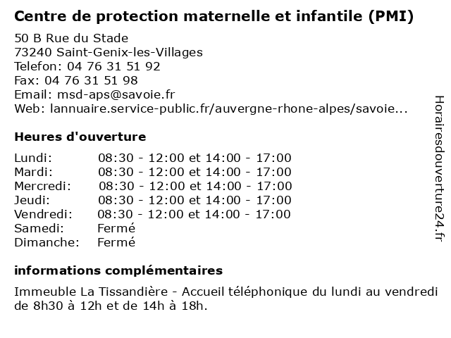 | Mardi | 08:30-12:00 et 14:00-17:00 |
