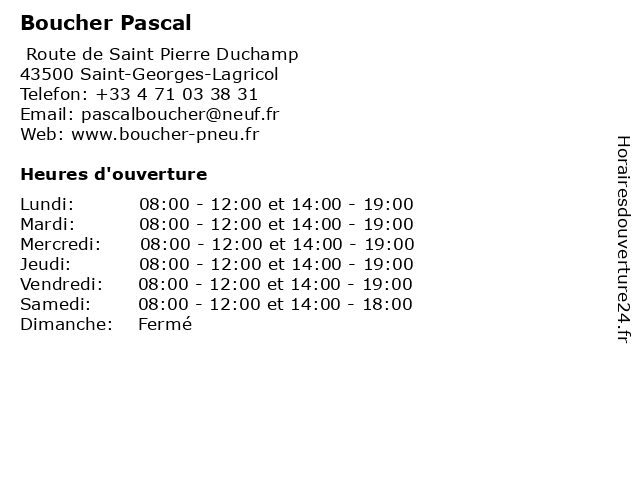 Lundi | 08:00-12:00 et 14:00-19:00 |
