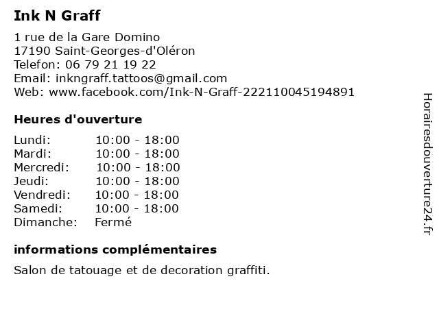 1 Mick Tatouage & Piercing (Distance: 6,25 km) 82 avenue de Bel Air, 17310 Saint Pierre d'Oléron d'oleron, de, ink, mick, piercing, pierre, salon, shop, st, style, tatouage 2 Valère tattoo club et body piercing (Distance: 6,54 km) 51 rue bouline, 17310 Saint pierre d'Oléron body, club, et, piercing, salon, tatouage, tattoo, valère 3 Maathieuu Tattooshop (Distance: 20,97 km) S/N Rue des Amourettes, 17740 Sainte-Marie-de-Ré de, ink, maathieuu, salon, shop, style, tatouage, tattooshop 4 Curtis Tattoo (Distance: 25,03 km) 51 rue Eugène Dor, 17000 La Rochelle curtis, de, ink, salon, shop, style, tatouage, tattoo 5 Cogi Blue Ink (Distance: 25,78 km) 12 Rue Baron De Chantal, 17410 St Martin De Re accessoires, blue, cogi, divers, habillement, ink, magasins 6 Repetto - BLUE INK (Distance: 25,96 km) n/a Avenue Victor Bouthillier, 17410 Saint Martin de Ré blue, chaussures, garde-robe, ink, maroquinerie, parfum, repetto |