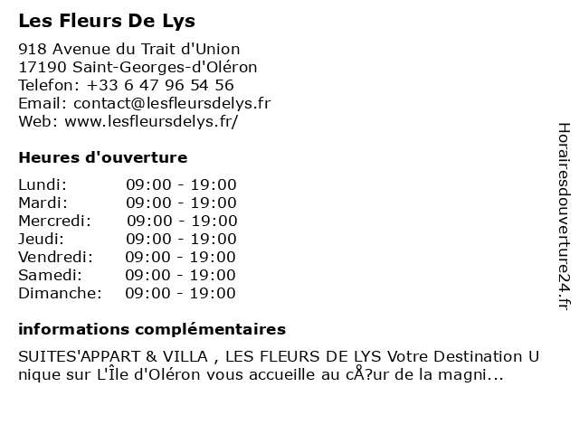 1 L'Ilot Des Lys (Distance: 25,40 km) 1 Rue Archimède, 17440 Aytré des, elifanny, ilot, l'ilot, lys, restaurants 2 Karine Lys - Psychologue (Distance: 28,88 km) 1 avenue de Béligon, 17301 Rochefort consultation, docteur, karine, lys, med, médecin, médecine, psychologue, traitement 4 Hôtel-Restaurant Les Bains (Distance: 0,38 km) 1 Rue des Quais du 158e RI, 17190 Saint-Georges-d'Oléron bains, chambre, hotel, hôtel, les, location, restaurant, restauration 5 Médiathèque municipale (Distance: 1,10 km) 82 rue du Docteur Seguin - Chéray, 17190 Saint Georges d'Oléron les sélections thématiques, municipale, médiathèque, ressources numériques 6 Multi-accueil les p'tites canailles (Distance: 1,21 km) , Rue du Docteur Seguin, 17190 Saint-Georges-d'Oleron accueil, canailles, caregivers houses, child care, family home, home care, kindergartens, les, micro-nurseries, multi, p'tites, parental home |