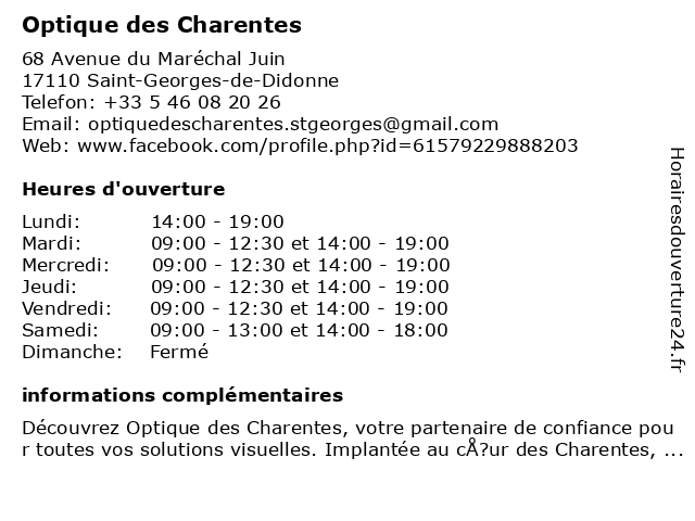 1 Bureau d'Expertise Aquitaine Charentes (Distance: 1,01 km) 5 Avenue du Docteur Camus, 17110 Saint-Georges-de-Didonne aquitaine, bureau, charentes, d'expertise 2 Optikid - Elbe Optique (Distance: 1,32 km) 31 Rue de la République, 17110 Saint-Georges-de-Didonne elbe, lunettes, monture, opticien, optikid, optique, solaire, vue 3 Écouter Voir - Optique & Audition Mutualiste (Distance: 2,88 km) 16 Boulevard de Lattre de Tassigny, 17200 Royan audition, ecouter, lunettes, magasin, monture, mutualiste, opticien, optique, voir, écouter 4 Selectour - Charentes Voyages (Distance: 3,03 km) 54 boulevard de la République, 17200 Royan billets de train, charentes, selectour, séjours, vols, voyage, voyages 5 Jetset Voyages / Charentes Voyages (Distance: 3,03 km) 54 Boulevard de la République, 17200 Royan agence, billet d'avion et hôtel pour votre club, charentes, jetset, séjour, voyages 6 Optique Lissac (Distance: 3,18 km) 11 rue Font de Cherves, 17200 Royan divers, détail, lissac, magasins, nra, optique, solena |