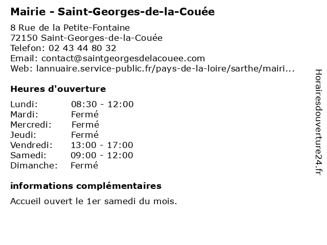 Termes de recherche pour Mairie - Saint-Georges-de-la-Couée:la, de, saint, georges, administration, mairie, assoc public, couée |
