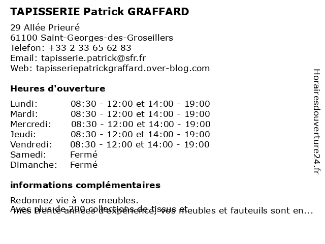 | Mardi | 08:30-12:00 et 14:00-19:00 |