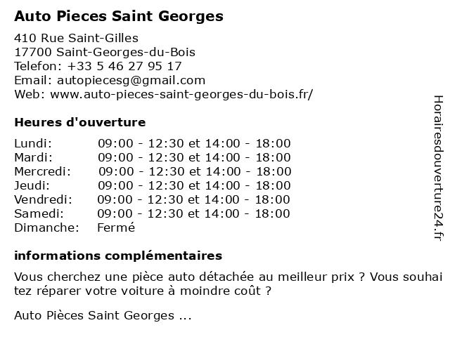| Samedi | 09:00-12:30 et 14:00-18:00 |