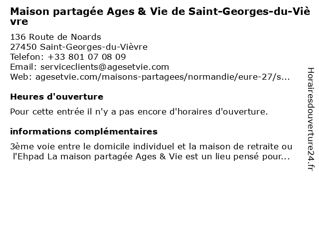 | Appeler Maison partagée Ages & Vie de Saint-Georges-du-Vièvre | |