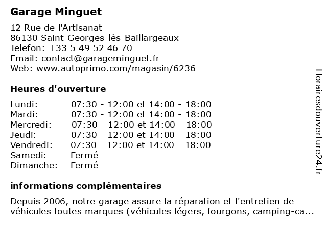 Lundi | 07:30-12:00 et 14:00-18:00 |