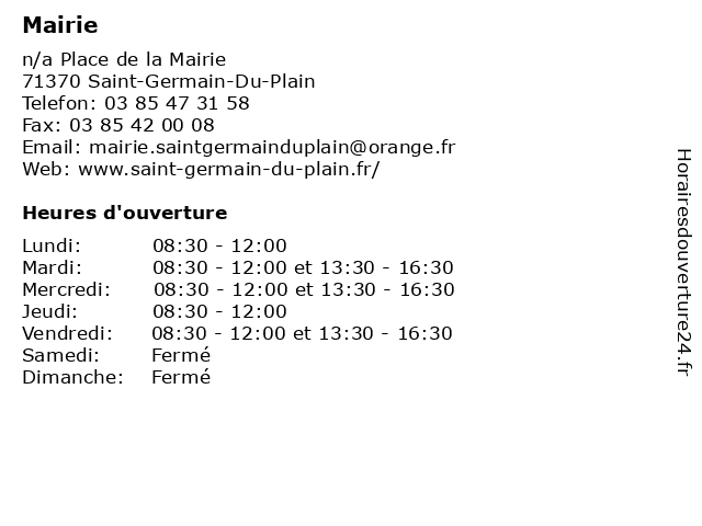| Mardi | 08:30-12:00 et 13:30-16:30 |