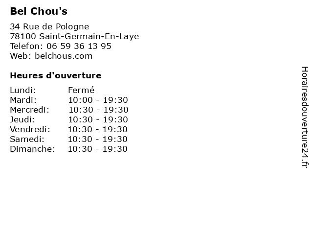 1 Bel Chou's (Distance: 10,00 km) 26 rue simone veil, 95870 Bezons bel, belchou's, boutique, chou's, cuir, femmes, hommes, magasin, vêtements 2 Bel Chou's (Distance: 13,13 km) 50 Avenue du Marechal Foch, 95100 Argenteuil bel, boutiques, chaussures, chou's, magasins, vente 3 Bel Chou's (Distance: 15,56 km) 99 Rue Saint Charles, 75015 Paris bel, boutiques, chaussures, chou's, magasins, vente 4 Bel Chou's (Distance: 16,87 km) 216 Rue de la Convention, 75015 Paris bel, boutiques, chaussures, chou's, magasins, vente 5 Bel Chou's (Distance: 17,59 km) 4 Boulevard Gallieni, 92390 Villeneuve-la-Garenne accessoires, bel, chaussures, chou's, chou’s, magasin, mode, prêt à porter 6 Bel Chou's (Distance: 18,01 km) 68 avenue du Maine, 75014 Paris bel, belchou's, boutique, chou's, cuir, femmes, hommes, magasin, vêtements |
