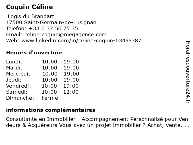 1 Dr Céline Vézien - Médecin généraliste (Distance: 25,15 km) 4 Rue Paul Vollaud, 16130 Segonzac celine, consultation, céline, dr, généraliste, médecin, soins, vezien, vézien 2 Céline Cocuaud - Pédicure-podologue (Distance: 30,97 km) 7 impasse de la Tonnelle, 17610 Chaniers cheville, cocuaud, céline, orteil, pied, podologue, pédicure 3 Céline Coiffure - Visagiste - Barbier (Distance: 35,44 km) 2 Rue Alphonse Micheau, 33920 Saint-Savin barbier, beauté, coiffure, céline, salon, style, visagiste 4 Céline Lavielle - Diététicienne (Distance: 35,84 km) 2 Route des Parriances, 33340 Bégadan alimentation, céline, dieteticien, diététicienne, lavielle, nourriture, sante 5 Céline Boulogne - Sage-femme (Distance: 35,99 km) 11 Boulevard Ambroise Paré, 17100 Saintes boulogne, celine, consultation, céline, docteur, dr, femme, med, médecin, sage, traitement 6 Dr Céline Nobili-Dubarry - Pédiatre (Distance: 35,99 km) 11 Boulevard Ambroise Paré, 17100 Saintes celine, consultation, céline, docteur, dr, dubarry, med, médecin, nobili, pédiatre, traitement |