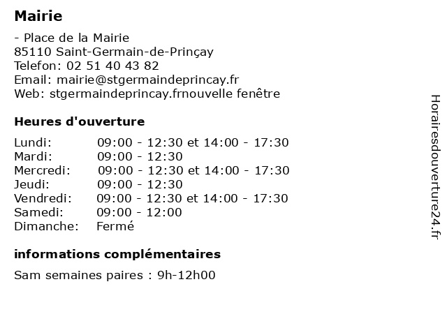 Lundi | 09:00-12:30 et 14:00-17:30 |